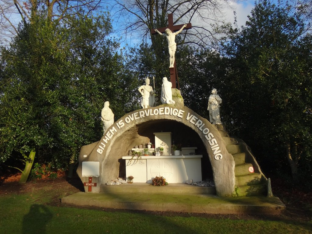 De kruisweg bestaat uit veertien levensgrote beeldengroepen (staties) die de lijdensweg van Jezus uitbeelden. Iedere statie vertolkt een deel van het verhaal: van de weg naar zijn kruisiging tot aan zijn opstanding. Tilburgers gingen in de jaren vijftig en zestig al dan niet in processie naar deze kruisweg. Het complex lag ver weg van de bewoonde wereld; Tilburg Noord bestond nog niet. Het park is in 1926 aangelegd, in eerste instantie met andere beelden. Van 1937 tot 1961 zijn de beelden, zoals die er nu zijn, geplaatst. Atelier P. Verbraak heeft hiervoor de opdracht gekregen. Iedere beeldengroep is betaald door Tilburgse parochies en dus duizenden parochianen. Tilburgers uit die tijd hebben model gestaan voor de beelden.