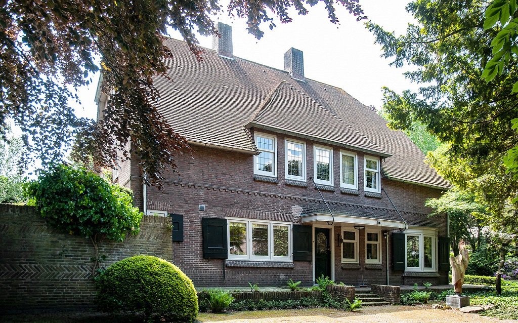 Het woonhuis met garage is in 1922, bijna honderd jaar geleden, in opdracht van fabrikant Ignatius Wouters gebouwd. Een royaal huis met dwarskap met wolfseinden met aanvankelijk een rieten bedekking die later door leipannen vervangen is. Het ontwerp is van J. de Lugt uit Bentveld. Het huis is aan alle kanten omgeven door een ruime tuin, ontworpen door de bekende tuinarchitect John Bergmans. Later heeft tuinarchitect Pieter Buijs met respect voor het werk van Bergmans er onder meer een terras in aangebracht. Links van het huis zien we nog een fraai vrijstaand gebouw. Er is een washuis met wc, een schuur, een wasplaats en een garage ondergebracht. Deze laatste wordt door de huidige eigenaar als atelier gebruikt.