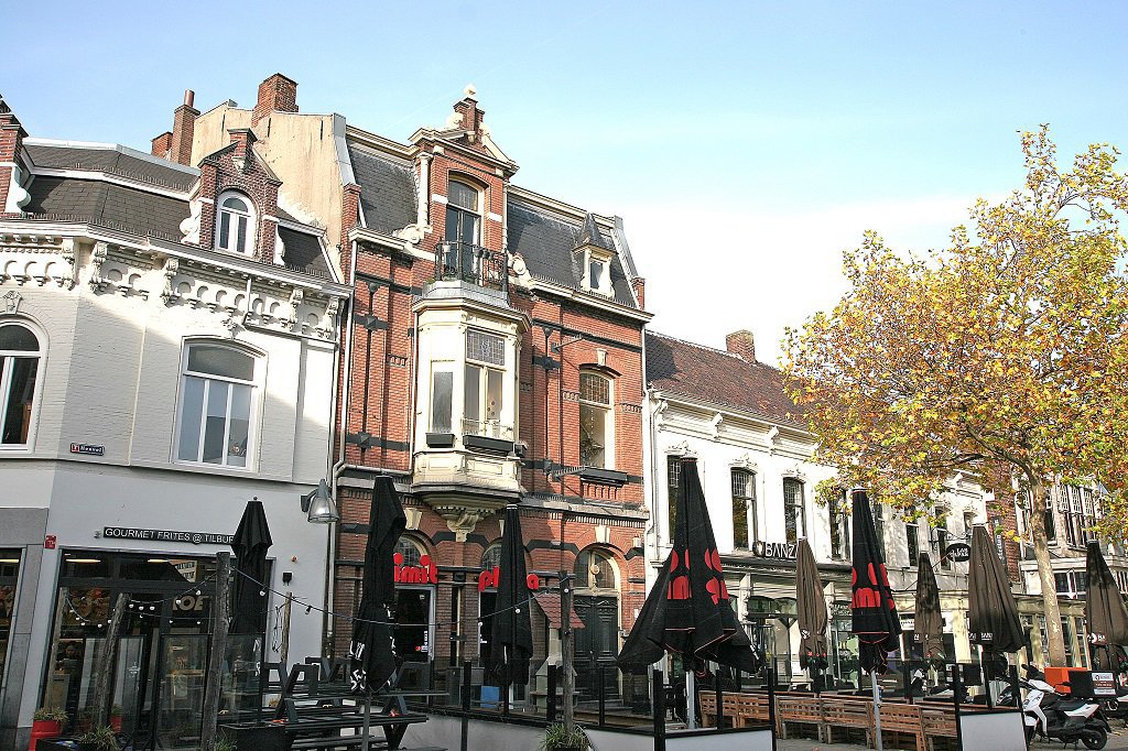 De voorgevel van dit deels onderkelderde gemeentelijk monument met troggewelven is in rode steen opgetrokken. De ingangspartij rechts bestaat uit een bewerkte dubbele voordeur met smeedijzeren raamroosters en met een bovenlicht onder een elliptische boog. Het symmetrische deel van de voorgevel links van die ingangspartij heeft op de hoeken een dubbele pilaster en een erker op de verdieping. Het zichtbare, opstaande deel van het mansardedak daarboven is voorzien van een natuurstenen leien schulpdak, onderbroken door een als topgevel uitgemonsterde dakkapel met bekroning die gedragen wordt door zuilvormige kolommen op voluten. In 1982 wordt op de begane grond de woonruimte veranderd in winkelruimte met een doorbraak van de achtergevel en een eenlaagse uitbreiding over de gehele binnenplaats, compleet met een nooduitgang naar de Heuvelstraat. De vanaf dan etalageraamkozijnen naast de voordeur worden verlaagd en in 2005 voor een fotozaak zelfs vervangen door nog verder verlaagde stalen deurkozijnen met bijbehorende trapjes. De verwijderde natuurstenen band en drie lagen metselwerk moeten nog ergens opgeslagen liggen. Ook gevelreclame wordt toegestaan. Bij ‘Simit Plaza’ zijn nu nog steeds de originele plafonds van het herenhuis te zien. De bovenverdiepingen worden bewoond.