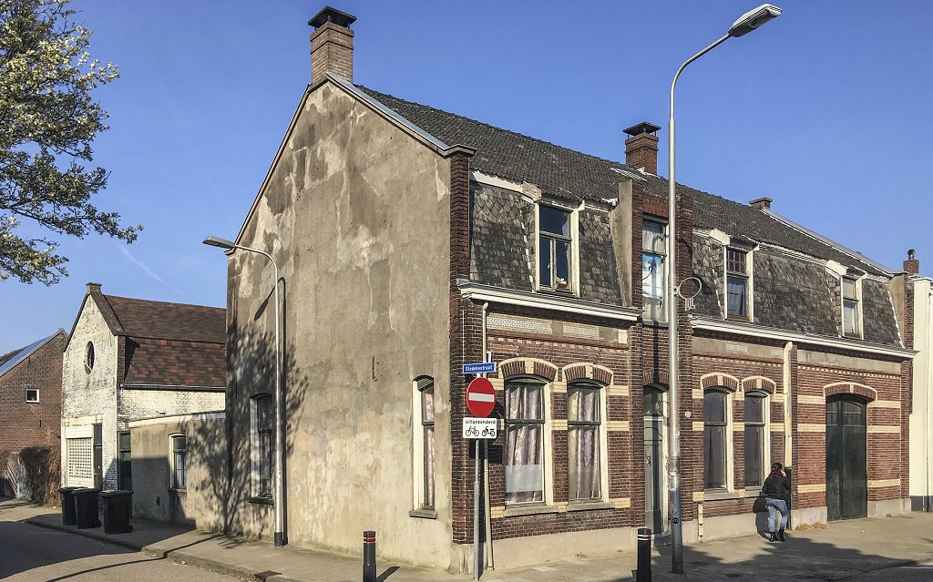 Dit aan de buitenkant slecht onderhouden pand heeft een interessante textiele voorgeschiedenis. Het heeft geen monumentstatus.