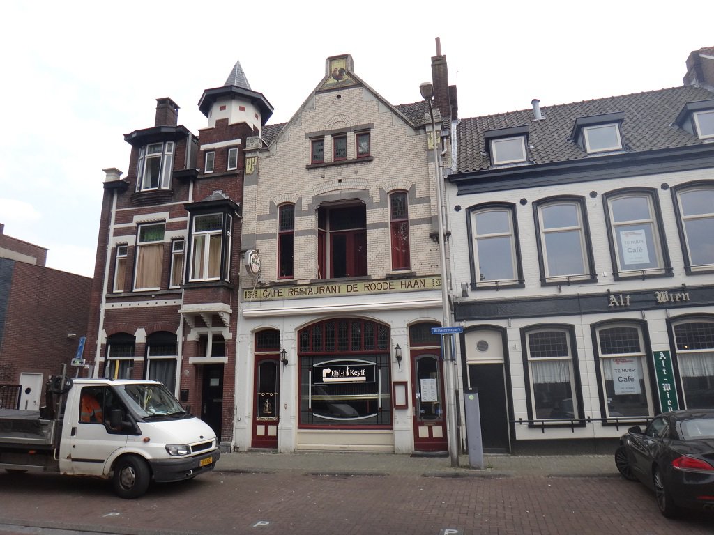 Dit pand is in 1912 gebouwd in opdracht van J. Verhoeven door aannemer G. van Beurden naar het ontwerp van architect Jos. Donders in Jugendstil. Het is een gemeentelijk monument. Het is een tweelaags pand met zolderverdieping onder een zadeldak. Onder een witgeschilderde hardsteen pui met vier pilasters, is de gevel opgetrokken in witte verblendsteen met rode voegen. Op de eerste verdieping bevind zich een loggia. Daarboven een tuitgevel met getrapte hardstenen fries met tegeltableau waarop een rode haan naar ontwerp van Rosenberg. De topgevel is tussen de gemetselde lisenen geplaatst van natuur- en verblendsteen. Hierin Jugendstilmotieven en bekroond met een natuursteen voorzien van decoratie. De ramen op de eerste verdieping zijn getoogd met rollagen, terwijl het middelste raam op de tweede verdieping een opvallende boogvormige rollaag heeft. Al in het midden van de 19de eeuw stond op deze locatie het etablissement “De Roode Haan”, genoemd naar de vrouw van de eerste eigenaar, Elisabeth de Haan. In 1873 kwam het in handen van de familie Verhoeven, brandde in 1881 helemaal af en werd in 1912 weer opgebouwd. Onder de oude naam voerde de fam. Verhoeven hier tot 1963 een café-restaurant met kegelbanen, dat in 1978 werden gesloten. Nu is er een Turks restaurant in gevestigd.